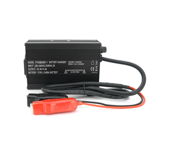 Зарядний пристрій для акумуляторів LiFePO4, 36 В (43,8 В), 12S, 6 А, "крокодили"
