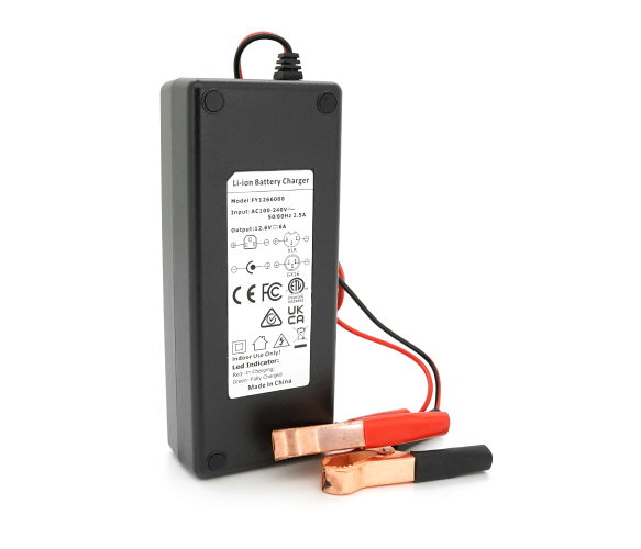 Зарядний пристрій призначений для заряджання літієвих акумуляторів з номінальною напругою 12 В (12,6 В). Пристрій забезпечує оптимальний струм заряду 6 А, що дозволяє швидко та ефективно зарядити батарею до повного рівня.