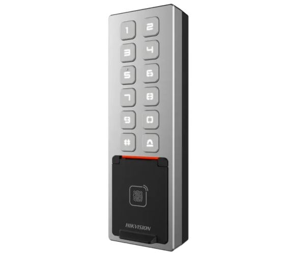 Високий рівень захисту: IP65 та IK08; Тонкий та гнучкий дизайн з металом; 3000 відбитків пальців, 10 000 карток та 100 000 подій; Вбудований картридер для карток M1; Підтримує роботу через мобільний додаток (Hik-Connect); Підтримує налаштування точки доступу, налаштування через веб-інтерфейс ПК та доступний мобільний Інтернет; Підтримує кілька типів аутентифікації: картка, відбиток пальця, PIN-код та Bluetooth