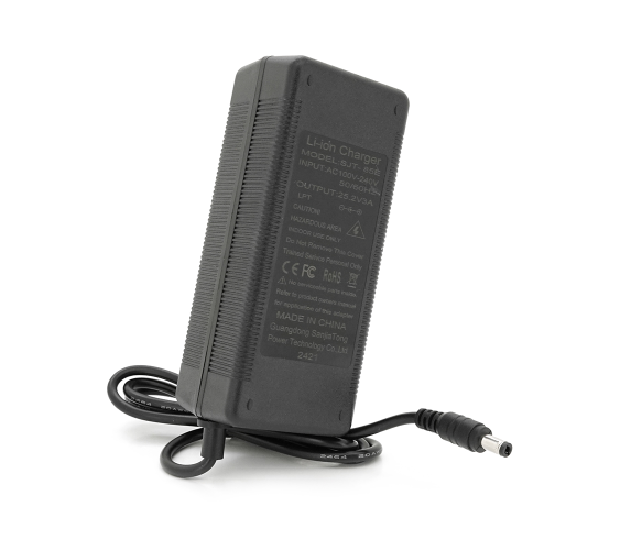 Зарядний пристрій призначений для заряджання літій-іонних акумуляторів з напругою 25,2 В та кількістю осередків 6S. Пристрій забезпечує струм заряду до 3 А, що дозволяє швидко та ефективно заряджати акумулятори.