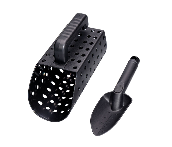 Набір для пляжного пошуку включає пластиковий скуб (скуп) і совок, що ідеально підходять як для дорослих, так і для дітей. Завдяки надміцній пластиковій конструкції ці інструменти можуть бути використані в різних умовах, будь то пісок, земля або гравій. Набір відрізняється легкістю (всього 430 грам), що дозволяє легко брати його з собою будь-куди.