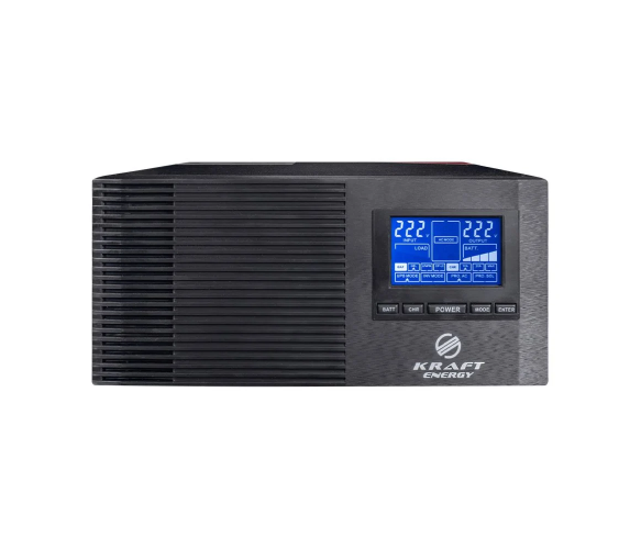 Інвертор з функцією ДБЖ Kraft KRF-AVR1000VA/800W-12V з потужністю 1000 ВА/800 Вт, із вбудованим зарядним пристроєм (струм заряду 10/20 А) та правильною синусоїдою на виході. Напруга зовнішньої акумуляторної батареї 12 В, підтримка заряду акумуляторних батарей типу AGM/GEL/LiFePO4. Вхідна напруга 145-270 В (режим ДБЖ), 100-290 В (режим інвертора) / вихідна напруга в AC-режимі 203-238±5 В (режим ДБЖ), 150-255 В (режим інвертора), в режимі АКБ 2 Ст.
