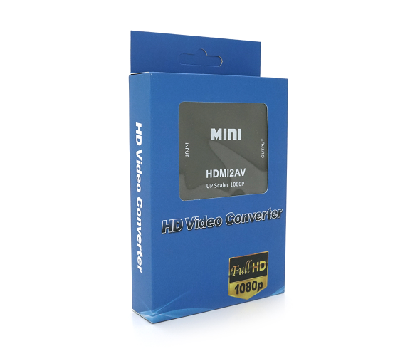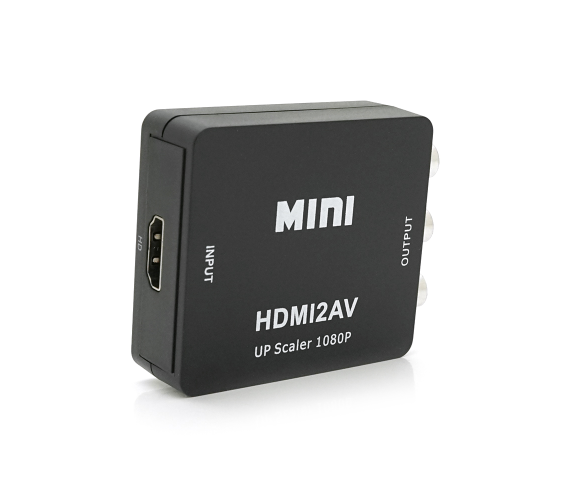 Конвертер Mini, HDMI to AV, ВИХІД 3RCA(мама) на ВХІД HDMI(мама), 720P/1080P, Black, BOX