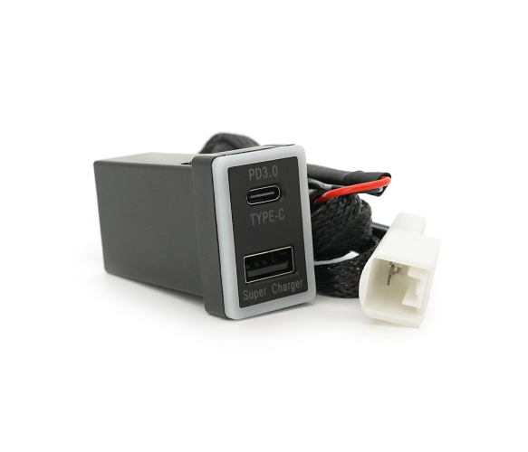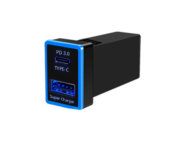 АЗУ врізне 60W-D01T03-С, PD+QC, Type-C: 30W, USB: 30W, LED підсвічування, комплект дротів з роз'ємами, 33x22х58mm, Black