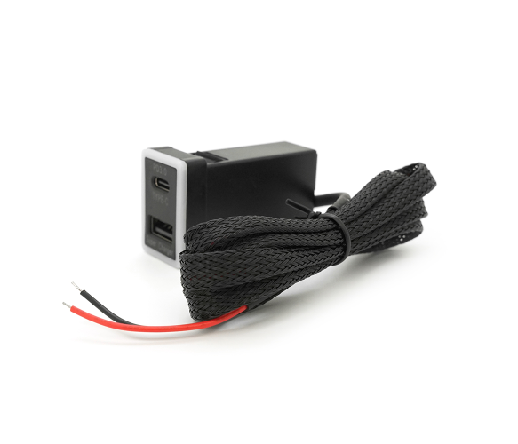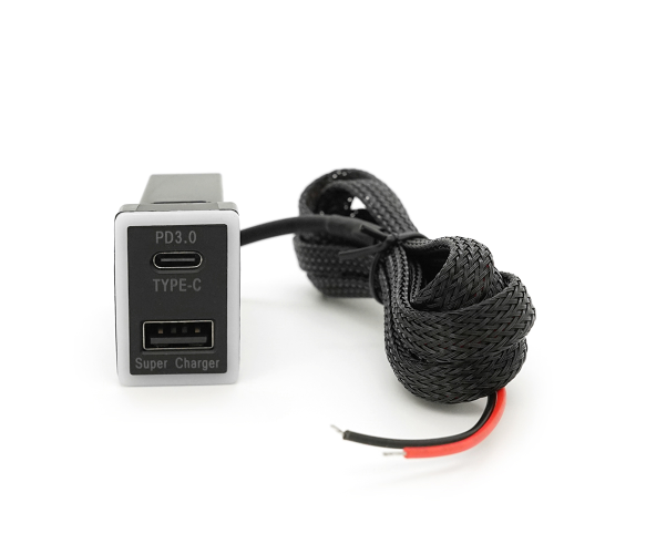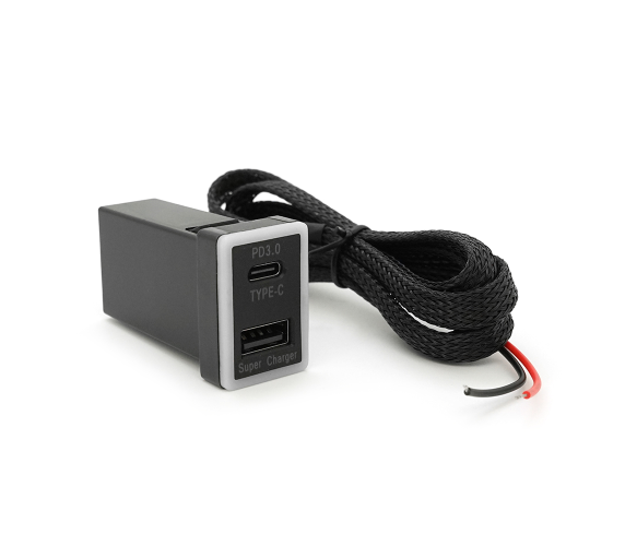 АЗУ врізне 60W-D01T03-S, PD+QC, Type-C: 30W, USB: 30W, LED підсвічування, комплект проводів під паяння, 33x22х58mm, Black