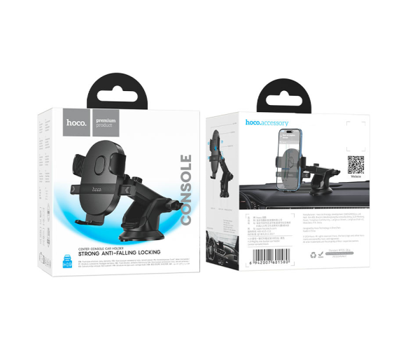 Автоутримувач HOCO H19, кріплення на торпеду, затискач 55-85мм, Black, Box