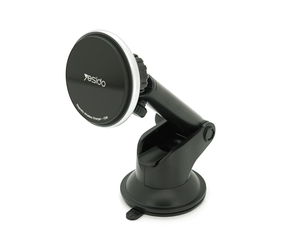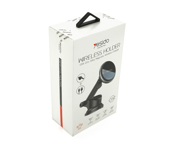 Автотримач Yesido C132+ Wireless Charging 15W, кріплення на торпеду, магніт, Black, Box