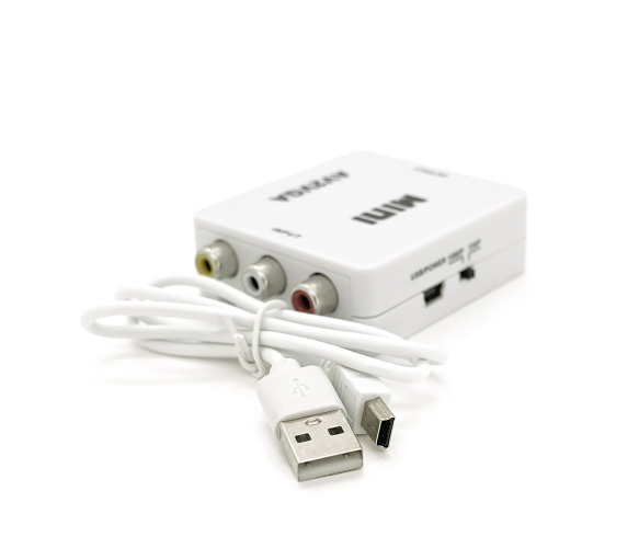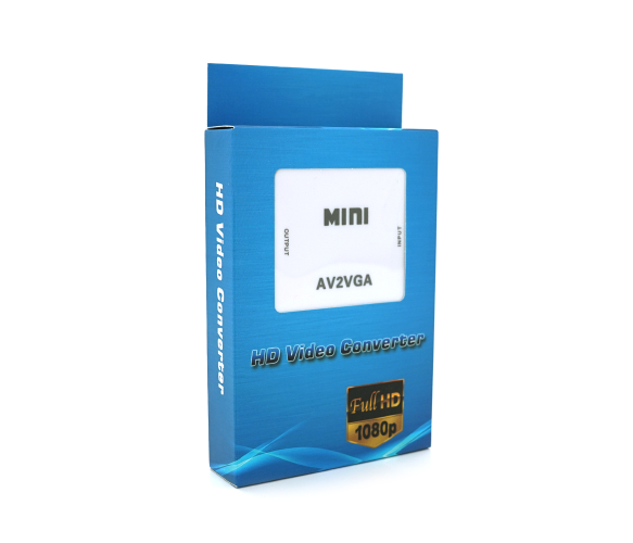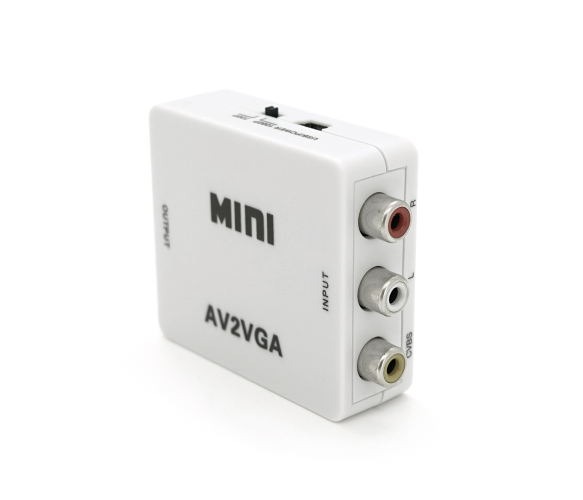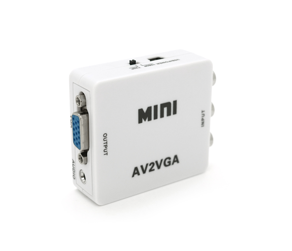 Конвертер Mini, AV to VGA, ВХІД 3RCA(мама) на ВИХІД VGA(мама), 720P/1080P, White, BOX