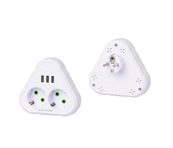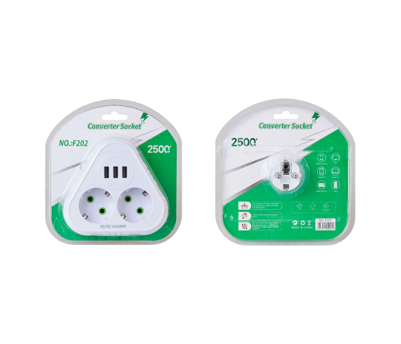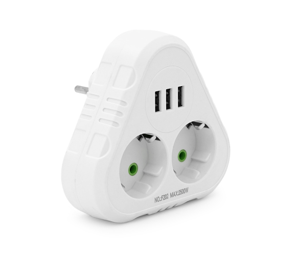 Розетка трійник F202 – це зручне та багатофункціональне рішення для підключення кількох пристроїв одночасно. Вона оснащена двома стандартними розетками із заземленням та трьома USB-портами для заряджання електронних пристроїв, що робить її ідеальною для використання вдома, в офісі або під час подорожей.