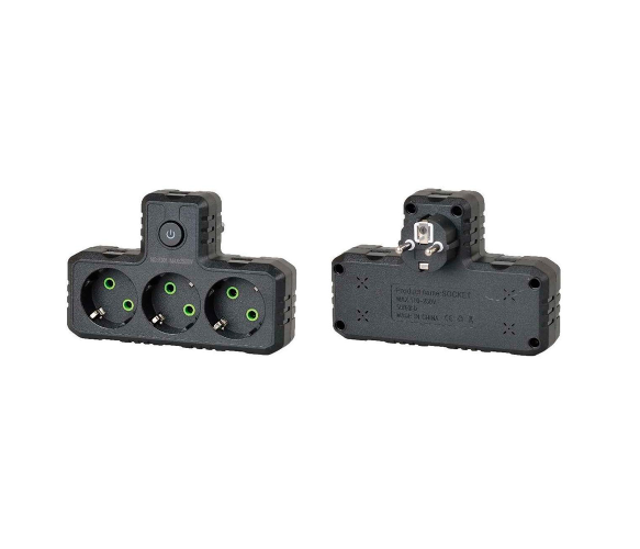 Розетка трійникТ-подібний із заземленням F301-Black, 3 розетки, 2500W, 10A, 110-250V~Max, Blister