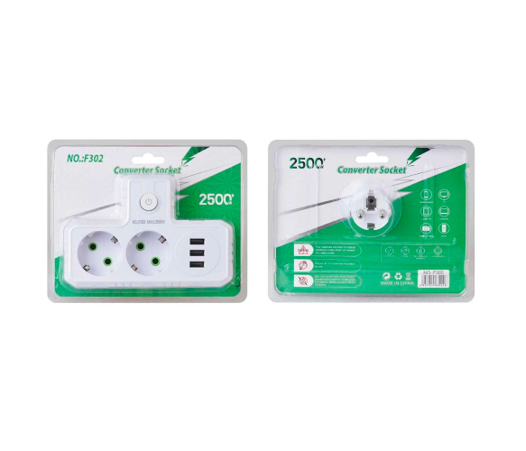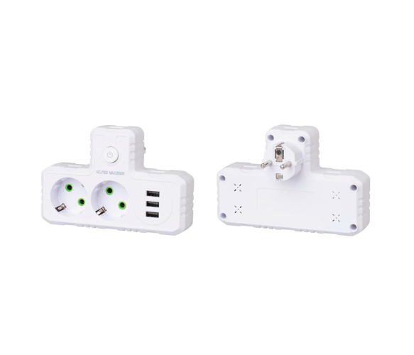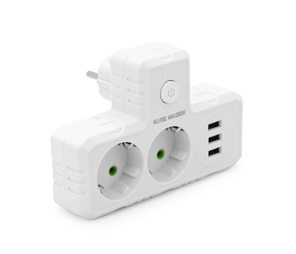 Т-подібна розетка F302-White із заземленням – це зручне рішення для підключення відразу кількох пристроїв до однієї розетки. Вона оснащена двома розетками для стандартних електроприладів та трьома USB-портами для заряджання мобільних пристроїв, планшетів та інших гаджетів. Компактний дизайн та висока потужність роблять її ідеальною для дому, офісу чи подорожей, де потрібна одночасна робота кількох пристроїв.