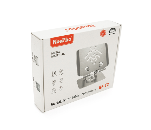 Настільна підставка для планшета NeePho NP-T2, кут нахилу до 90 °, поворот 360 °, корпус метал, 150х125мм, 0,55 кг, Silver, Box