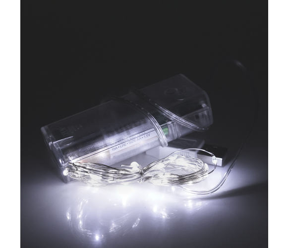 Гірлянди 100LED, 1 режим, 10 метрів, прозора ізоляція, живлення від 3*АА, White, ОЕМ