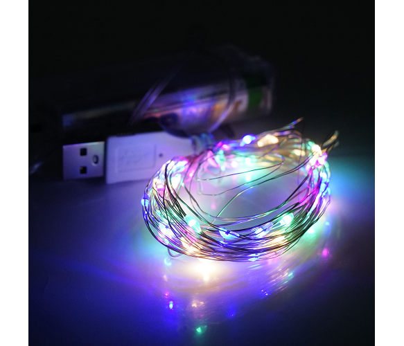 Гірлянди 100LED, 1 режим, 10 метрів, прозора ізоляція, живлення від USB+ 3*АА, Mix Color, ОЕМ