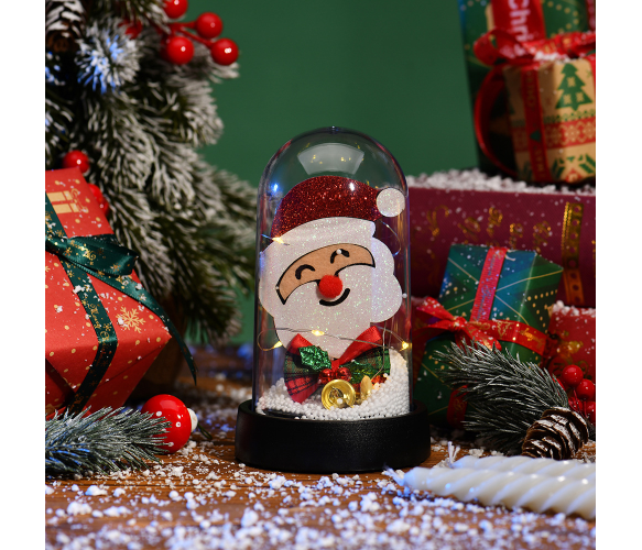 Цей чудовий товар - Дід Мороз у колбі з LED підсвічуванням розміром 16x10x18,5 см, який працює від трьох батарейок типу АА, обов'язково приверне увагу всіх покупців! Ця оригінальна фігурка Діда Мороза в колбі стане чудовою новорічною прикрасою для вашого будинку або офісу.