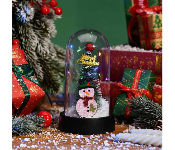 Декоративний сніговик на ялинці в колбі з LED підсвічуванням - ваш ідеальний вибір для створення новорічного затишку і атмосфери у вашому домі! Цей витончений аксесуар розміром 16х10х18,5 см буде не тільки чудовою прикрасою вашої ялинки, а й красивою деталлю інтер'єру в будь-якому приміщенні.