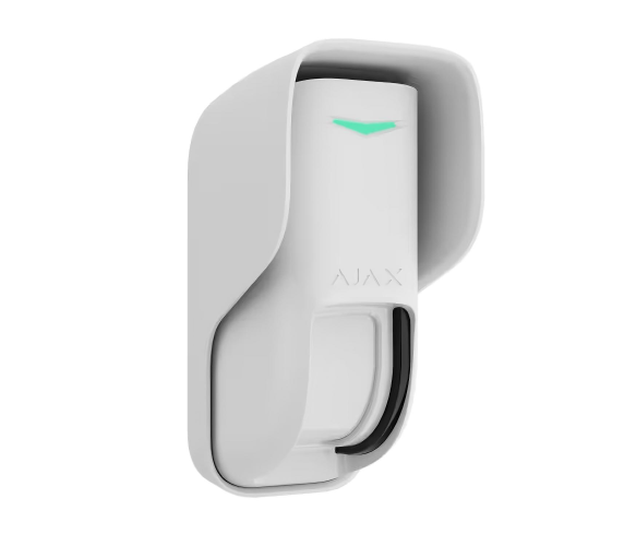 Бездротовий вуличний датчик руху типу штора Ajax Curtain Outdoor Jeweller White з подвійною технологією виявлення – 2 ІЧ-сенсори та мікрохвильовий сенсор, з імунітетом до тваринних зростом до 100 см, дальністю зв'язку з централлю до 1700 м, дальністю виявлення руху до 8-12 м