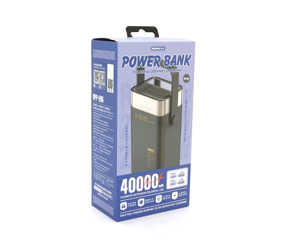 Power Bank Remax RPP-596 40000mAh, 2USB+2Type-C, 22.5W, QC/PD, Gray, 0.92kg
