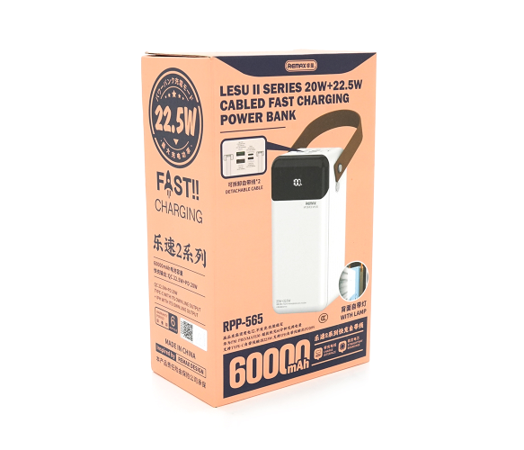 Power Bank Remax RPP-565 60000mAh, 2USB+Type-C+Lightning, QC/PD, 22.5W, Black/White, 1.34kg