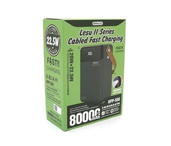 Power Bank Remax RPP-566 80000mAh, 3USB+Type-C+Lighting, 20W, Black, 1.74kg