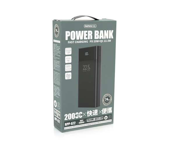 Power Bank Remax RPP-672 20000mAh, 2USB+Type-C, 20W, Black, 0.47kg