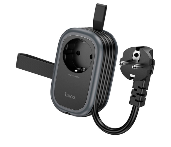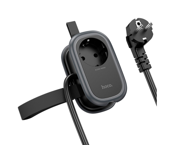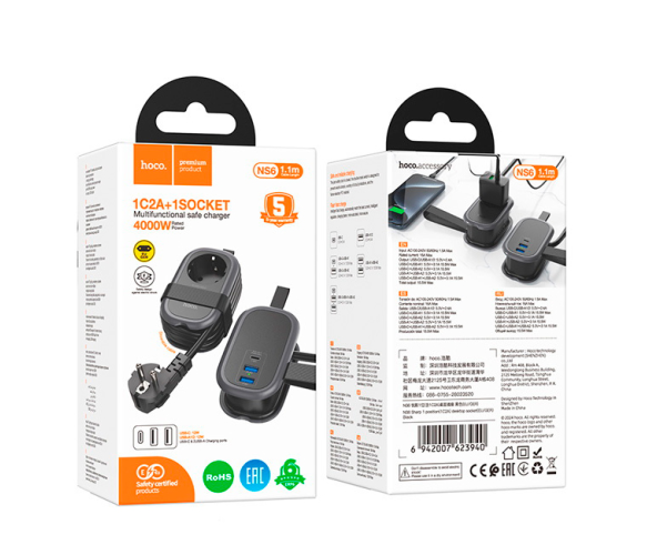 Мережевий фільтр HOCO NS6 на 1 розетку + 2 USB + USB-C, 30W, кабель 1.1м, 220В, Black, Box