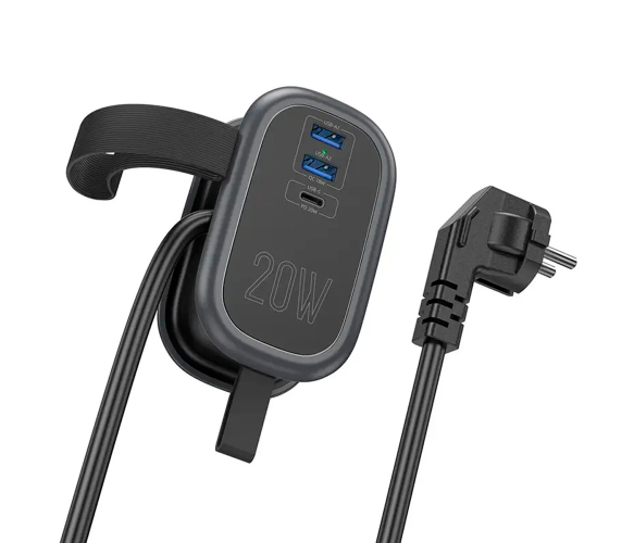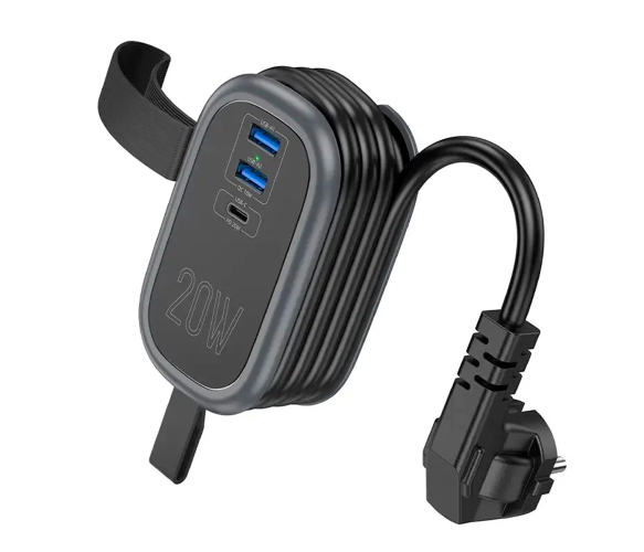 Фільтр HOCO NS7 на 1 розетку + 2 USB+ USB-C, 20W, кабель 1.1м, 220В, Black, Box