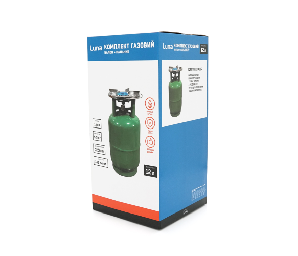 Газовий балон GL-12 5кг(12л), тиск 18BAR + пальник 20354, Green, Q2
