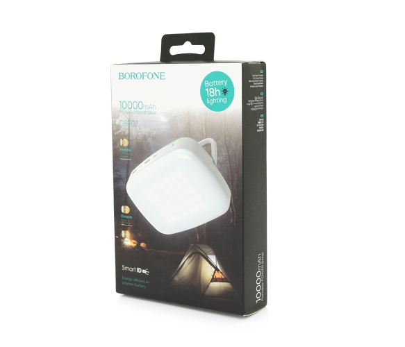 Power Bank Borofone DBT07 10000mAh+LED ліхтар, 2USB+Type-C, 18W, White, 0.31kg