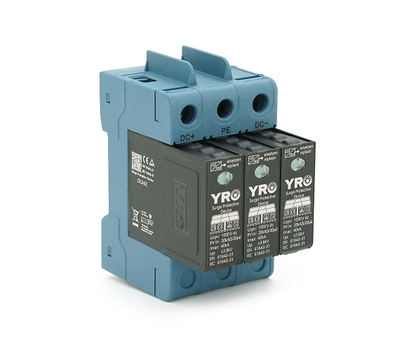 Захист від перенапруг YRSP-D2 DC SPD 3P 20-40KA 1000Vdc T2 - це надійний та якісний пристрій, призначений для захисту електричної мережі від можливих перенапруг. Цей триполюсний захисний пристрій має номінальну напругу 1000Vdc і здатен витримувати стрибки струму до 20-40KA.