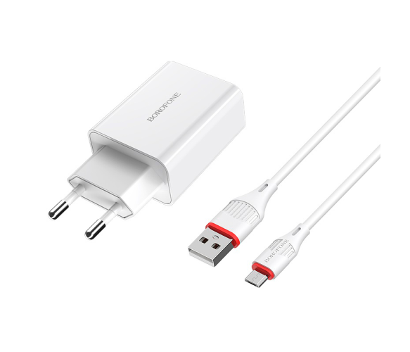Компактний та зручний набір для заряджання мобільних пристроїв, що включає мережевий адаптер та синхронізаційно-зарядний кабель. Оптимальне рішення для швидкої та безпечної підзарядки смартфонів, планшетів та інших гаджетів із роз'ємом MicroUSB.