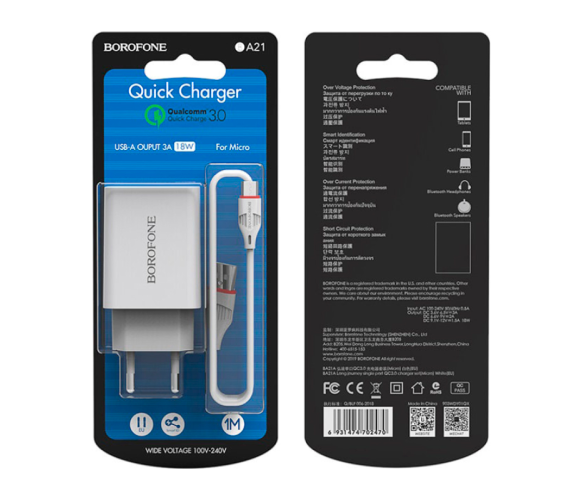 - Сумісність із швидкою зарядкою (QC 2.0/3.0, якщо підтримується пристроєм)