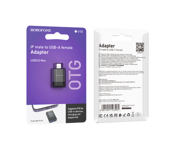 Перехідник Borofone BV18 USB2.0(F) => Lighting(M), Black, Blister
