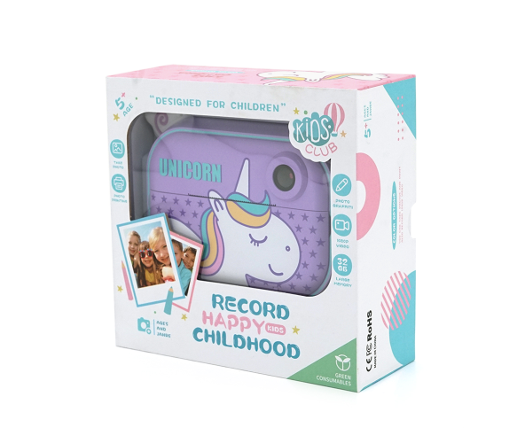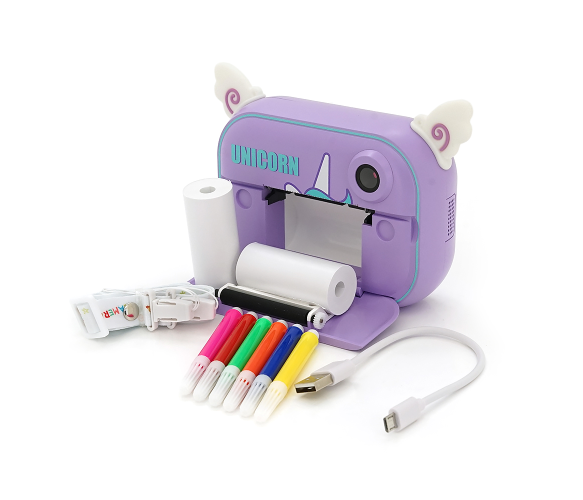 Дитячий фотоапарат YT008 з функцією миттєвого друку, підтримка microSD card, Фіолетовий Єдиноріг, Box