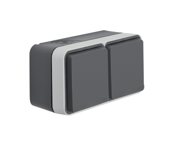 Розетка HAGER з з/к подвійна горизонтальна IP55, сіра, 16А/250В W.1