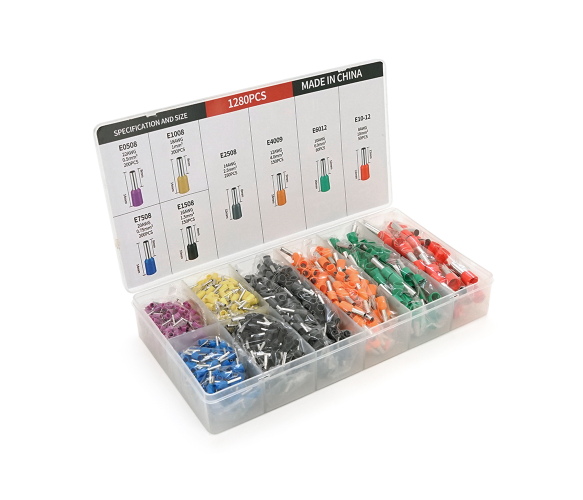 Набір клем/наконечників 1280шт (E0508v-200, E7508b-200, E1008y-200, E1508bl-150, E2508gr-250, E4009o-150, E6012g-80, E1012r-50) в боксі