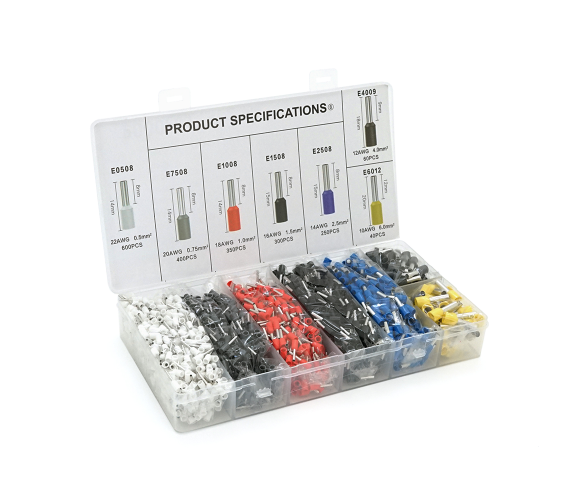 Набір клем/наконечників 2000шт(E0508w-600 E2508b-250,E1008r-350,E1508bl-300,E4009gr-60,E7508gr-400,E6012y-40,)у боксі