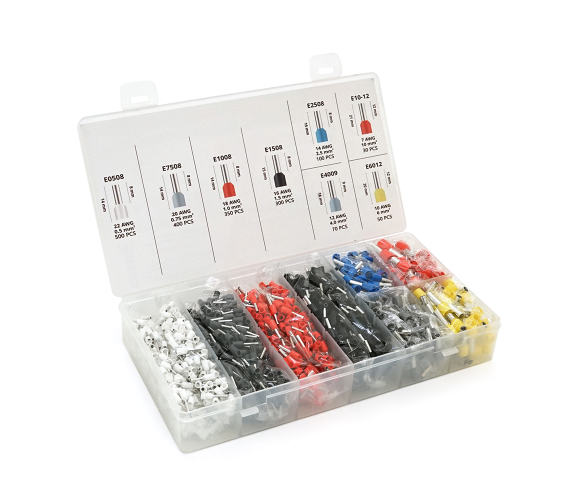 Набір клем/наконечників 1800шт(E0508w-550 E2508b-100,E1008r-350,E1508bl-300,E4009gr-70,E7508gr-400,E6012y-50,E1012r-30)у боксі