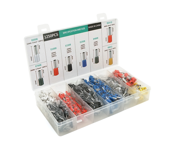 Набір клем/наконечників 1250шт(E0508w-200 E2508b-250,E1008r-200,E1508bl-250,E4009gr-100,E7508gr-200,E6012y-25,E1012r-25)у боксі