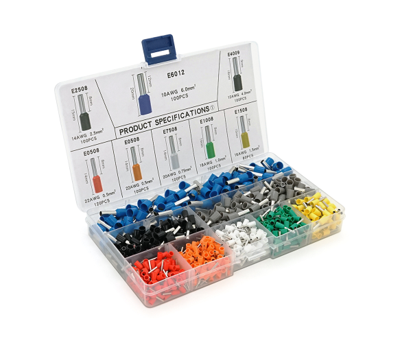 Набір клем/наконечників 800шт (R-100, B-100, Y-100, Bl-100, O-100, W-100, Gr-100, G-100) у боксі