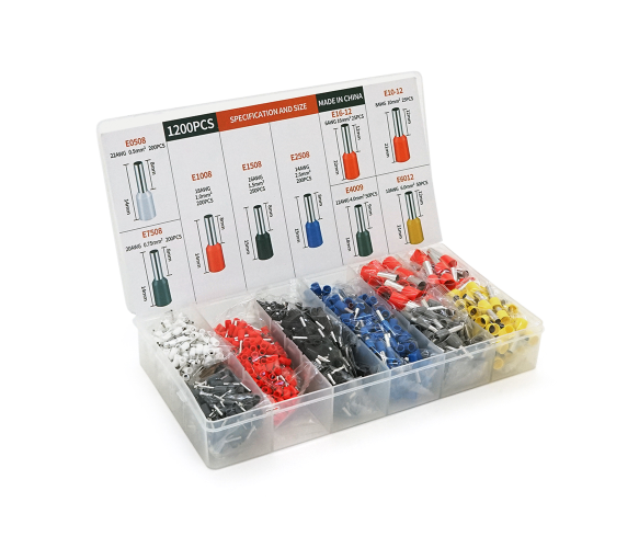 Набір клем/наконечників 1200шт (E0508w-200, E7508g-200, E1008r-200, E1508bl-250, E2508b-200, E4009gr-50, E6012y-50, E1012r-25.E1612r-25) в боксі