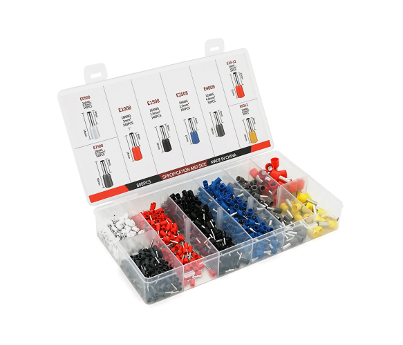 Набір клем/наконечників 800шт(E0508w-140 E2508b-140,E1008r-140,E1508bl-140,E4009gr-50,E7508gr-140,E6012y-25,E1012r-25) у боксі