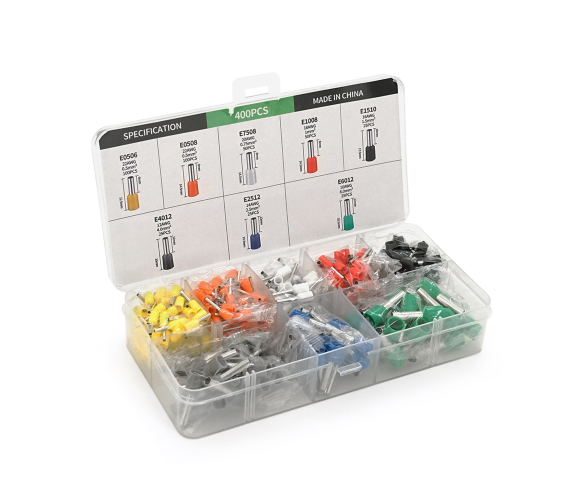 Набір клем/наконечників 400шт(E0506y-100.E0508o-100.E2512b-25,E1008r-50,E1510bl-25,E4012gr-25,E7508wr-50,E6012g-25) у боксі