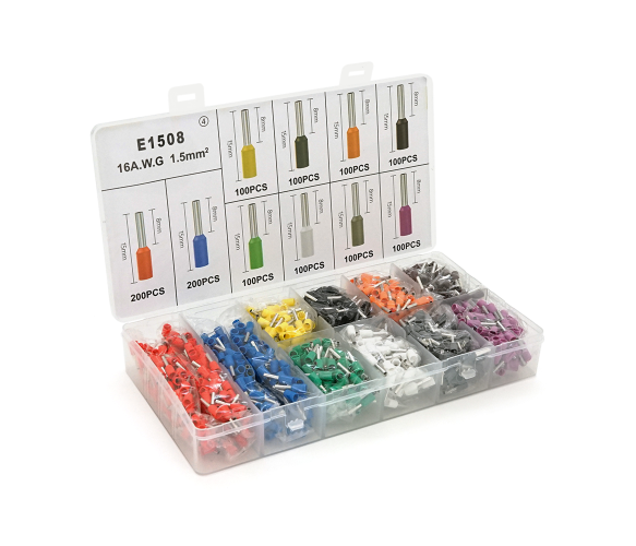 Набір клем/наконечників 1200шт VE1508 (R-200, B-200, Y-100, Bl-100, O-100, P-100, G-100, W-100, Gr-100, V-100) у боксі