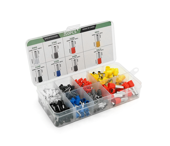 Набір клем/наконечників 320шт (E2508b-30, E1008r-50, E1508bl-40, E4009gr-20, E1008r-50, E6012y-25.E7508gr-60.E0508w-80)в боксі