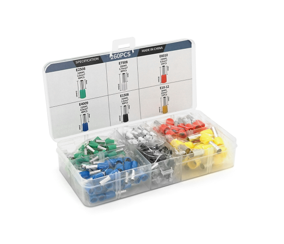 Набір клем/наконечників 260шт(E2508g-60,E1012y-15,E1508bl-40,E4009b-40,E6010r-25.E7508w-80)у боксі