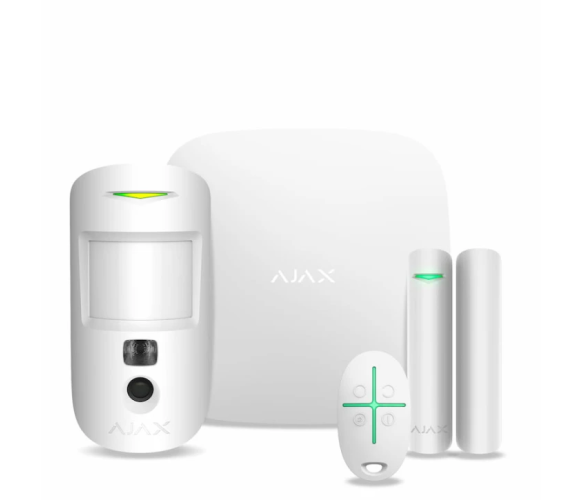 Ajax StarterKit Cam Plus – стартовий комплект бездротової системи безпеки Ajax з фотоверифікацією тривог. Комплект сигналізації StarterKit Cam Plus забезпечить багаторівневу безпеку та швидкість реагування на тривогу. У комплект StarterKit Cam Plus входить чотири пристрої: централь Hub 2 Plus, датчик руху з фотокамерою MotionCam, датчик відкриття DoorProtect, брелок управління SpaceControl.
