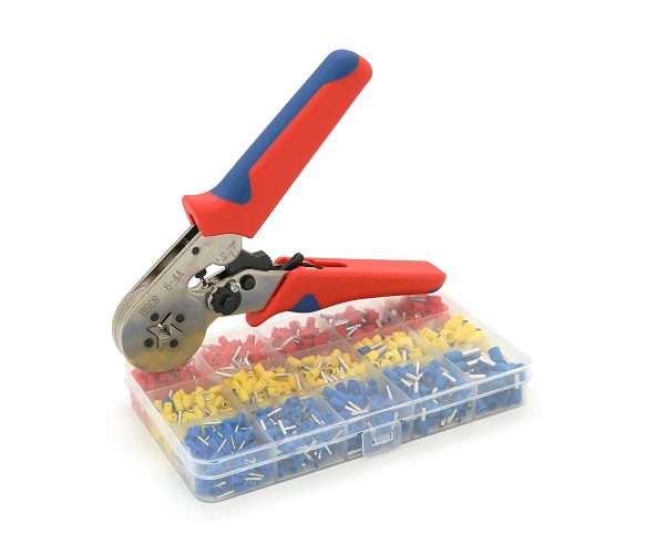 Кримпер HCS8 6-4A для обтиску кабельного наконечника, blue-red, набір кабельних наконечників (VE0508, VE1508, VE1008, VE4009, VE2508)