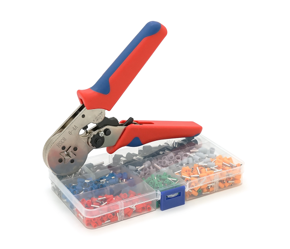 Кримпер HCS8 6-4A для обтиску кабельного наконечника, red-blue + набір кабельних наконечників (VE0508, VE7508, VE1008, VE1508, VE2508, VE4009, VE6102)