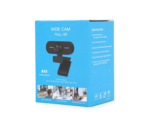 Вебкамера з гарнітурою A03, 1080p, пласт. корпус, Black, Q100